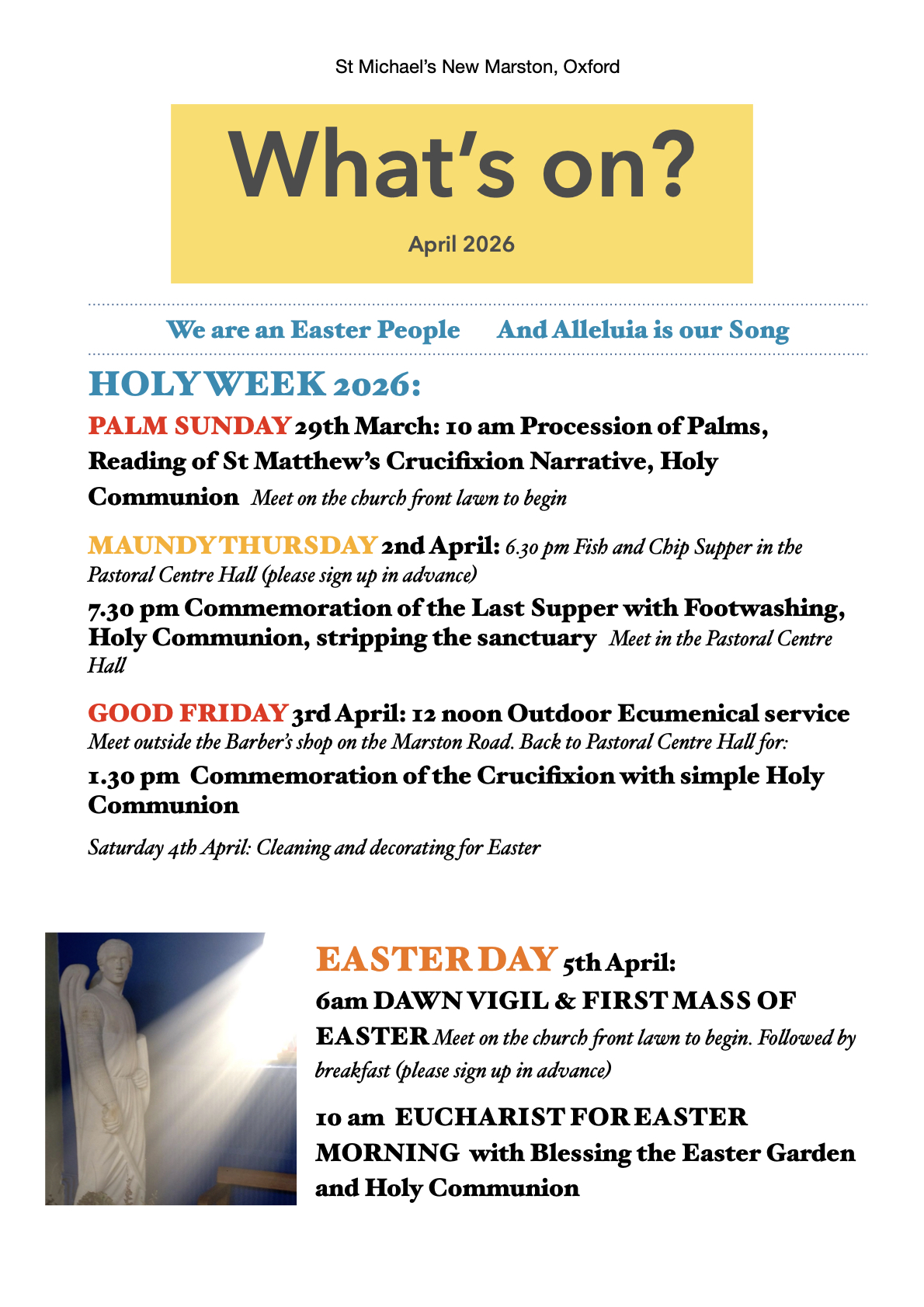 We are still meeting for worship in the Pastoral Centre Hall. Join us for our Holy Week events and Easter Celebrations - listed above. You can worship with us onsite or online - it's fully participatory and you will find a warm welcome